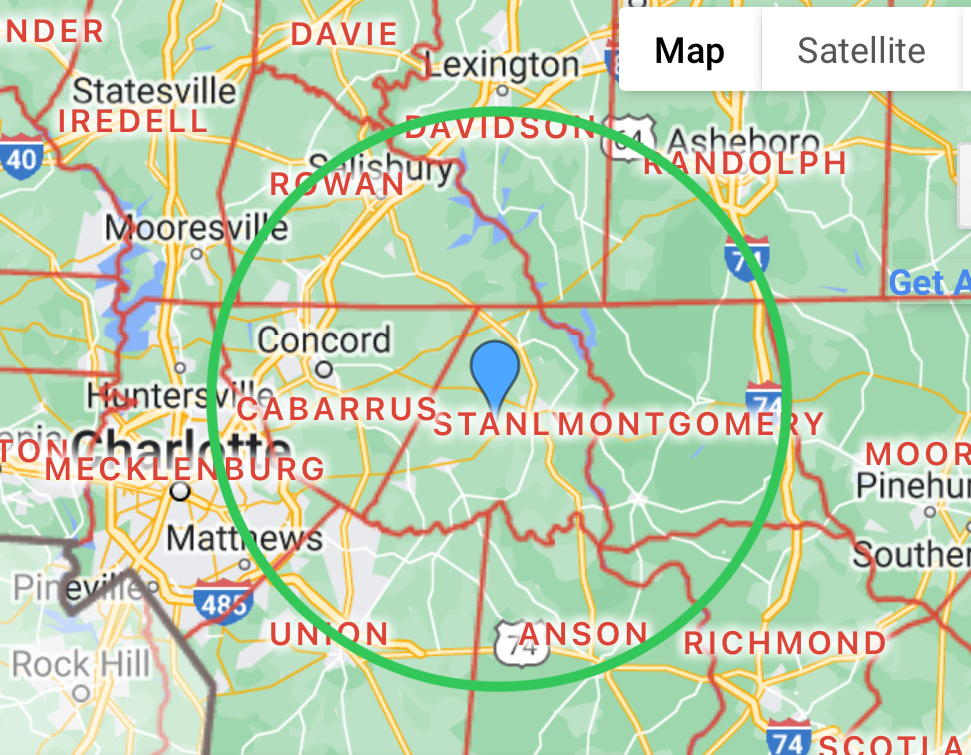 Albemarle, Concord, Kannapolis, Charlotte, Harrisburg, Mint Hill, Landis, Unionville, Fairview, Granite Quarry, Southmont, Stanfield, Salisbury, Mt. Gilead,